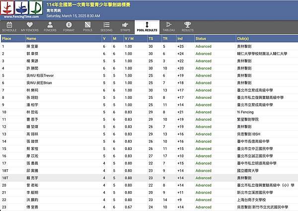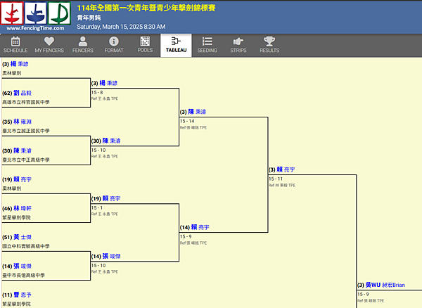 由於全中運團賽的積分,是以青排的排名計算,為了避免成為拖累團體積分的那個人,所以,在上星期參加全排(應該是學測倒數期間最後1次全排-114年全國第一次擊劍錦標賽),下星期一、二月考的情形下,還是到臺中的國立臺灣體育運動大學參加114年全國第一次青年暨青少年擊劍錦標賽。我最喜歡到國立臺灣體育運動大學參加比賽,幾乎每次我們都住在來來商旅(國立台中科技大學旁),然後,去一中夜市隨便亂買一通當作晚餐,超級幸福。