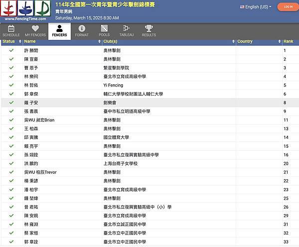 去年青排打得不太好,一次第17名(32晉16輸了)、一次第10名(16晉8輸了),所以,目前青排的排名是15名,這次青排排在第12。本次的目標,就是不要完全沒有積分,這樣排名就不會掉太多。