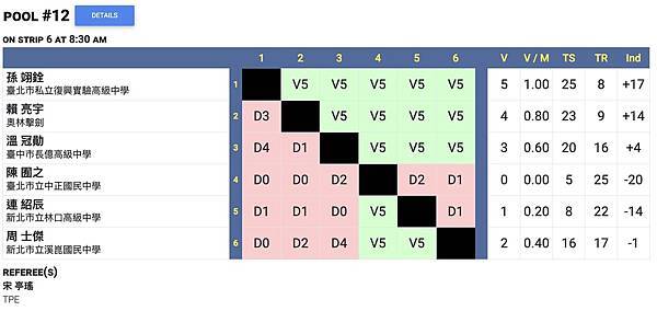 因為排第12,剛好只分12組,所以,就跟同校的翊銓第一場就對上了,5分真的很快,還沒進入狀況就輸掉了。但影響不大,其他的選手自己還是有控場的能力的。