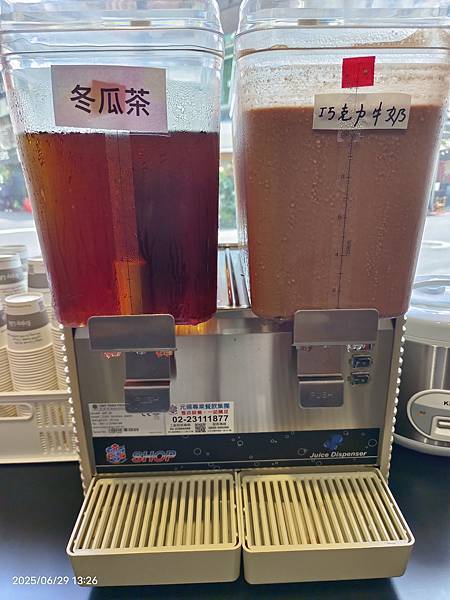 飲料有冬瓜茶和巧克力牛奶,我和爸爸都喝冬瓜茶(普通,冰冰甜甜的,但不會特別好喝,就是冰涼的飲料)。