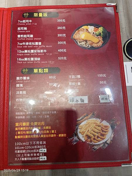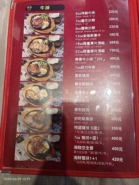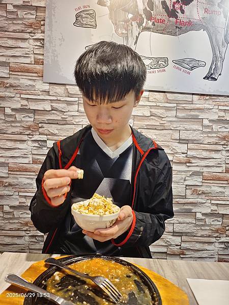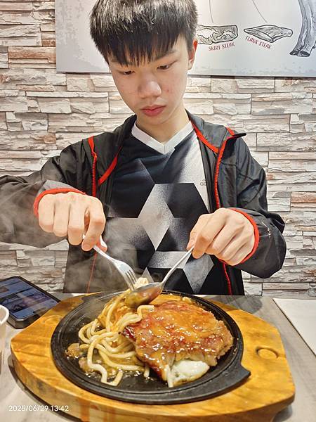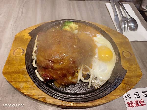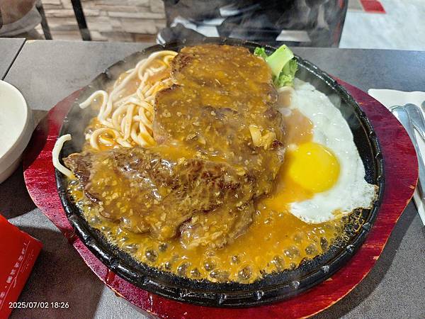 我點的9oz霜降沙朗5分熟,正常的鐵板,有麵、蛋、一朵綠花椰菜。整體來說,牛肉品質對得起它的價格,對於食量大的青少年而言,這是吃得飽的。吃不飽的話,還有其他附餐可以吃,是非常划算的選擇。