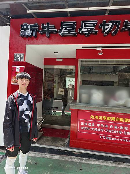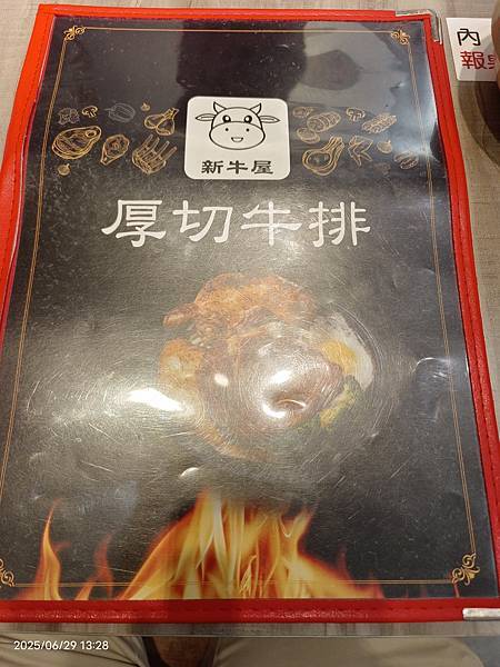 今天台北溫度超高,中午一直不想出門覓食,但撐到1點多,還是得出門找東西吃。本來好不容易在爸爸的逼問下挑了波記茶餐廳(從小吃到大的《波記茶餐廳》),但快到時發現原先也常吃的麵大廚收掉之後,開了一間平價牛排館-新牛屋厚切牛排。我們倆人相望一眼,就立刻有了試試新店的共識。中午太陽真的很大,我的眼睛都張不開了,變成跟爸爸的差不多大。