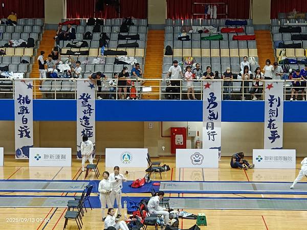 我覺得這次比賽主辦單位非常值得鼓勵,賽場秩序管得非常好,沒有以前亂亂的情形,雖然比賽的時程還是會拖,但這是一定的,因為選手總是會有需要更換裝備等各種狀況。賽場還特別佈置了條幅「利劍在手」「勇氣同行」「登峰造極」「挑戰自我」,希望以後比賽都能比照這個水準。